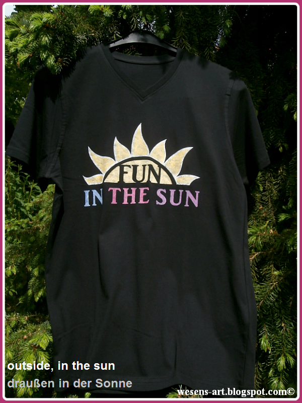 (Wenn man ein weißes Teil nimmt, dann den Schritt mit der weißen Stofffarbe auslassen und die UV-sensitive Stofffarbe direkt auftragen.)
